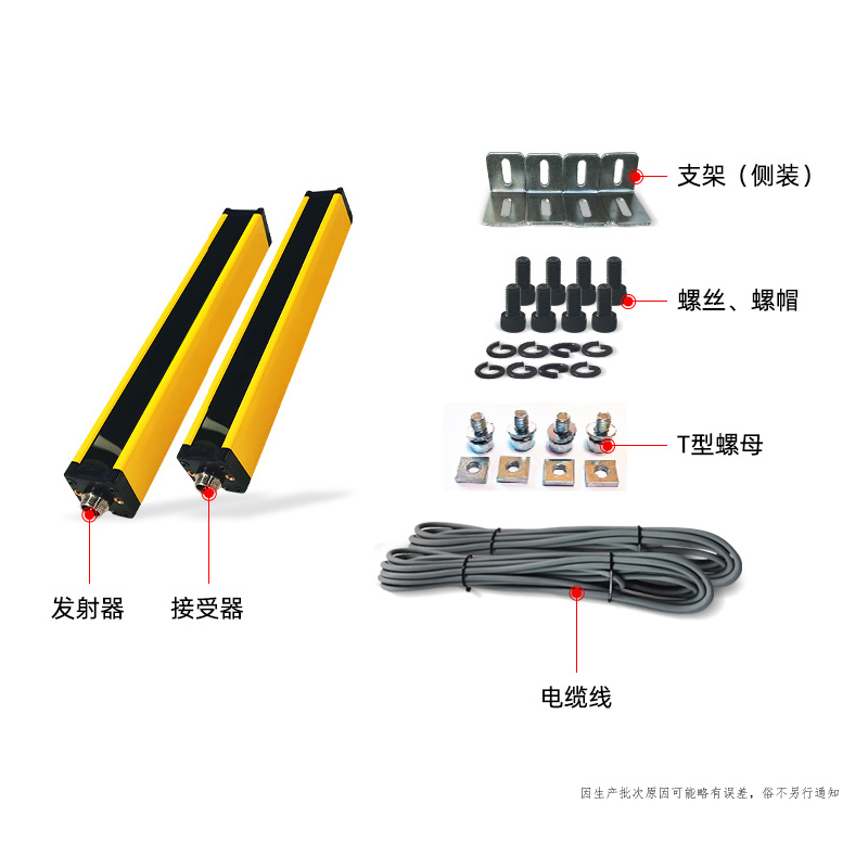 確定安裝位置:安全光柵通常安裝在操作區(qū)域的兩邊,確保危險區(qū)域被光柵有效檢測區(qū)域所覆蓋且離危險源有一定的安全距離。這樣可以及時檢測到操作工人的身體部位,避免發(fā)生傷害。